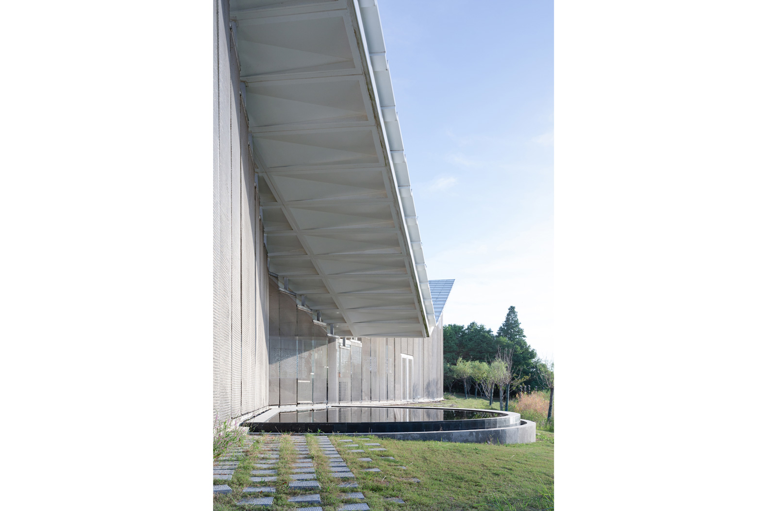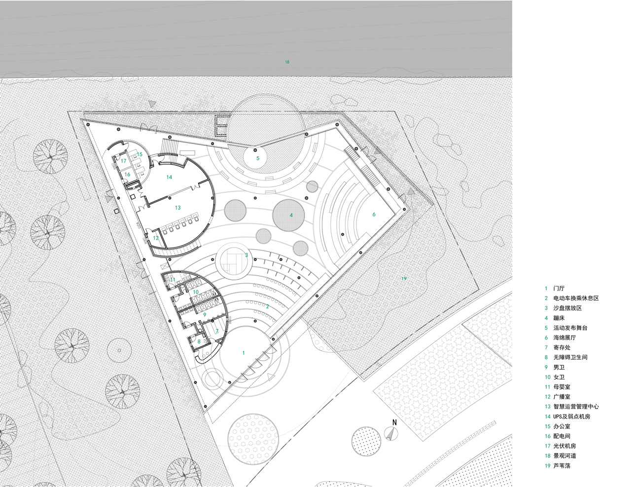 设计之初,我们就确立了“轻介入”的原则,最大限度减少对场地环境的破坏,轻触场地保护生态,这也为建筑预留了更多开放的可能性。回归建筑本身,我们将过渡性空间和供人们短期停留的空间,更多地向自然敞开,让建筑与外界环境衔接,这样既强化了空间的生态属性,也给了我们一个契机:既让使用者享受到优越的自然生态体验,又大幅降低了建筑的用能需求。