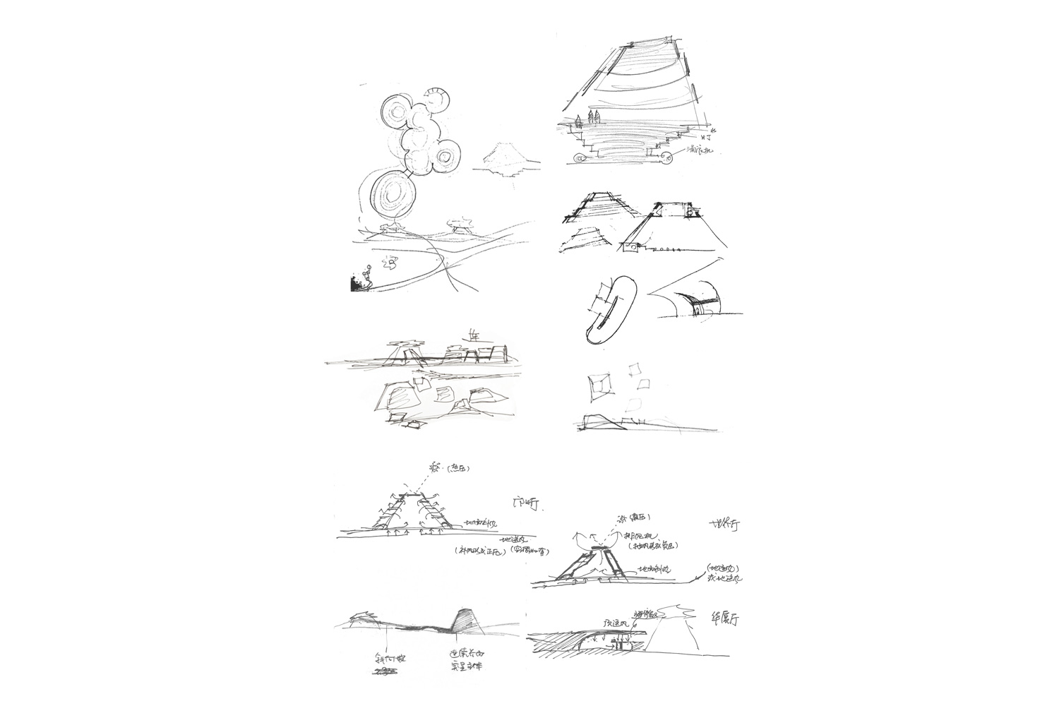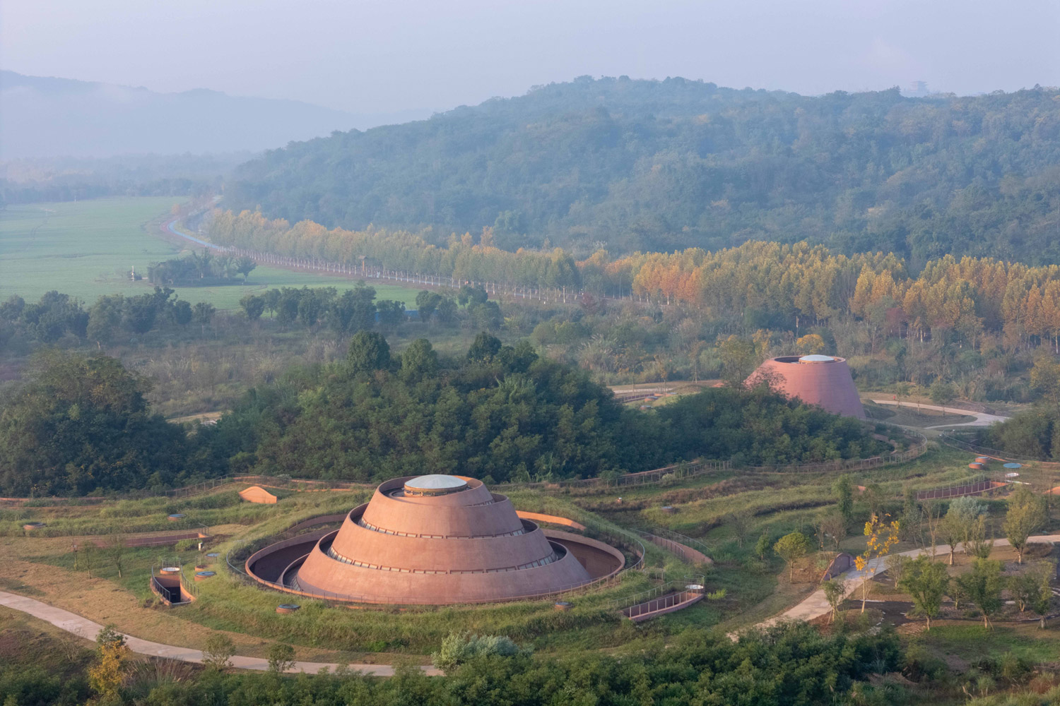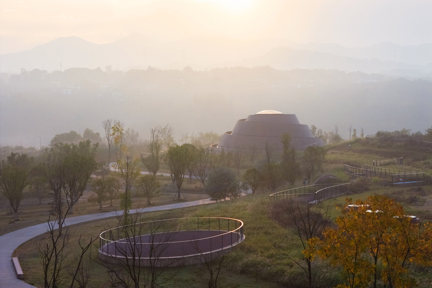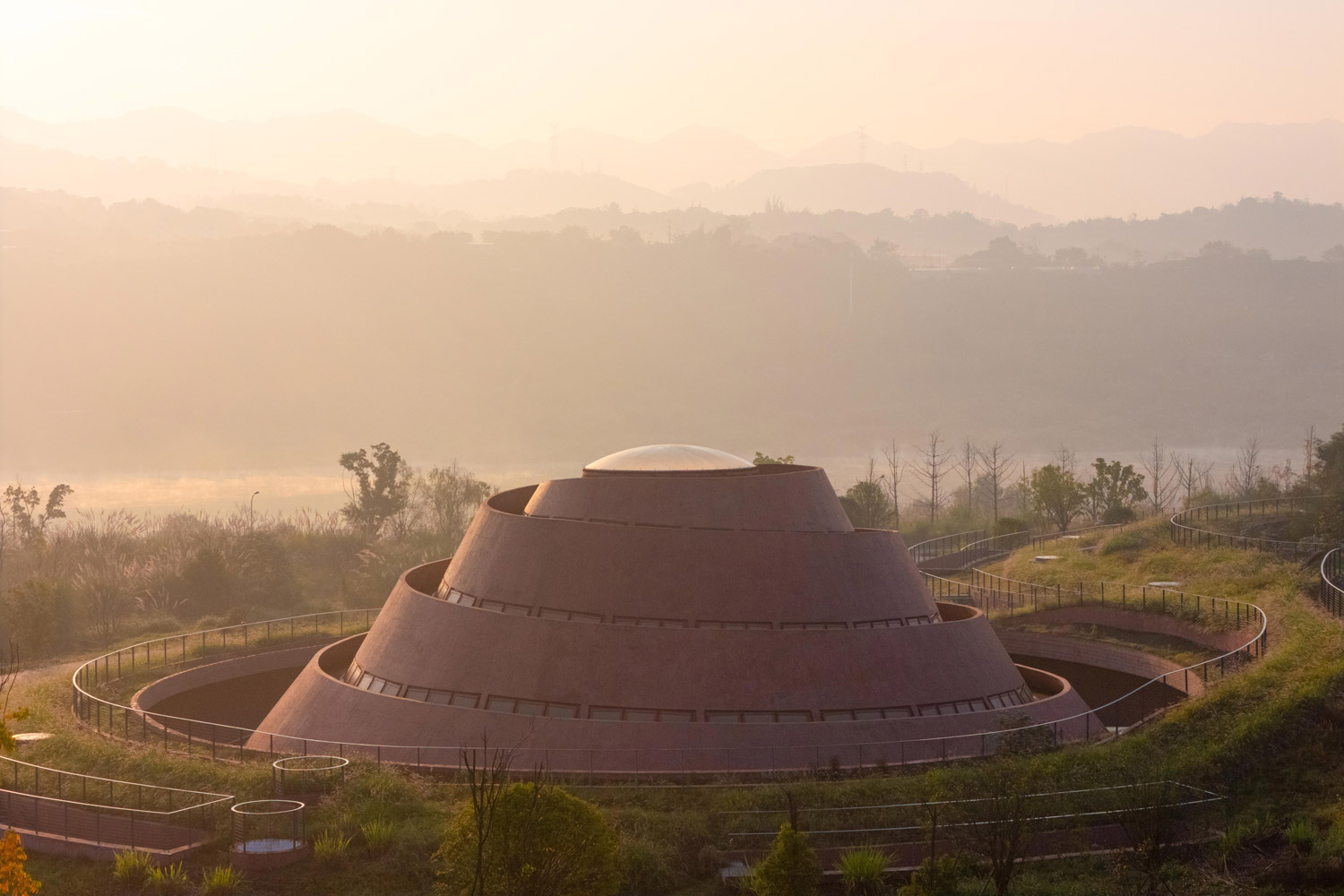 重庆广阳岛大河文明馆借助场地现状“遗痕”展开绿色生态设计,采用一系列科技展陈技术,“起承转合”五大篇章讲述“世界流域文明的兴衰演进大势”、发掘“中华大河文明的传承发展之道”、打造广阳岛成为“长江经济带生态文明的交流展示之眼”。设计立足于重庆本土的气候特点与广阳岛的生态本底特征,项目采用了生态屋面、开放庭院、天井天窗等一系列绿色设计手法,力求做到自然能源与生态资源利用的最大化;建筑布局应紧凑高效,各建设区域主题明确,功能复合,可满足多种不同规格、场景下的功能使用需求;合理配置建设资源,对场地内现存或建造过程中产生的碎石、巨石等进行景观化再利用。