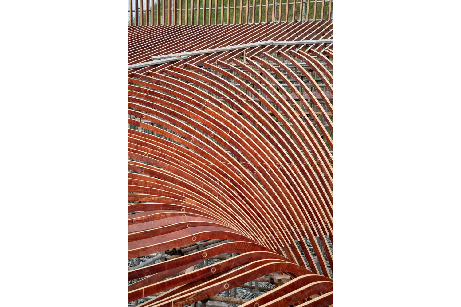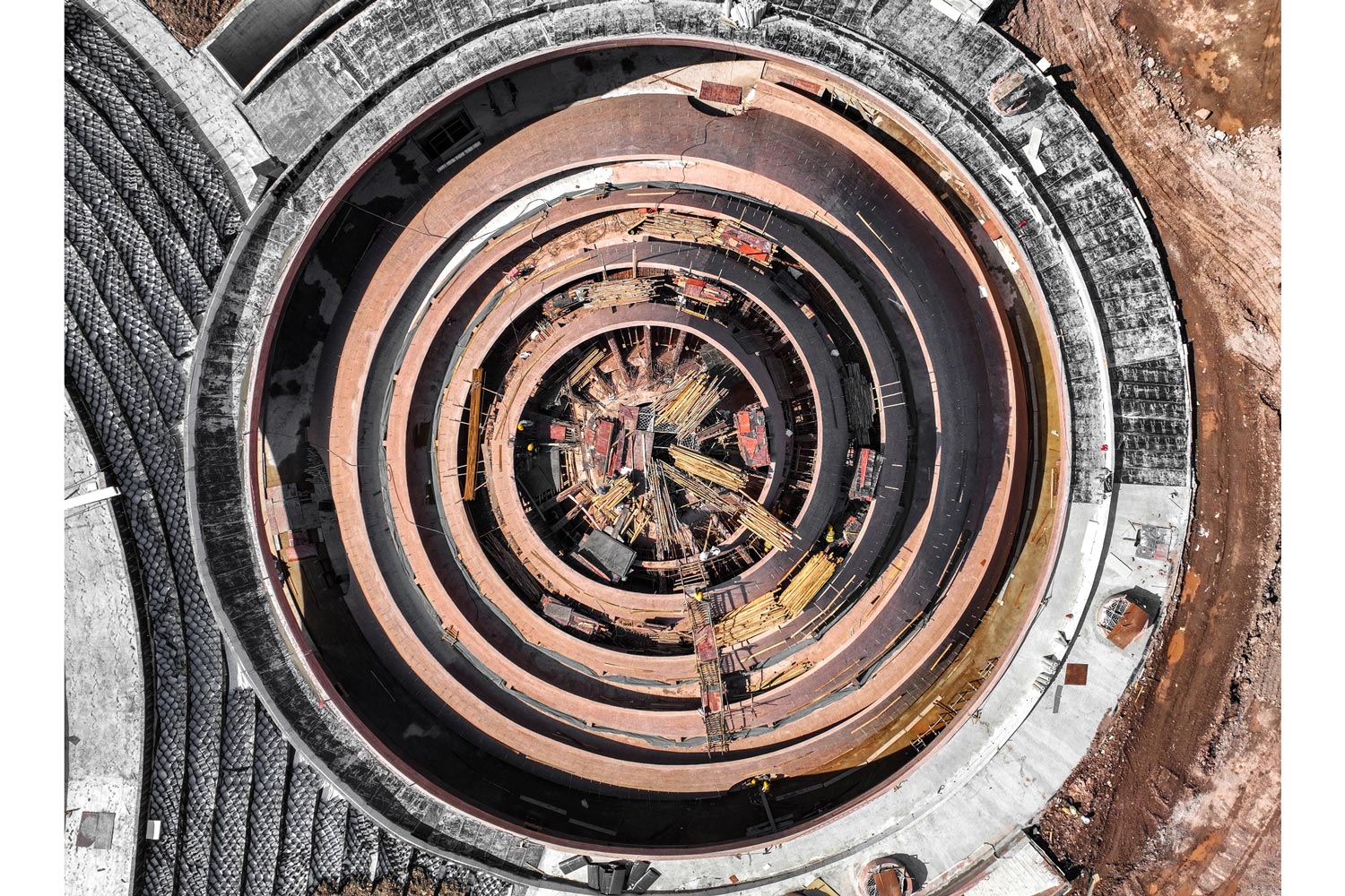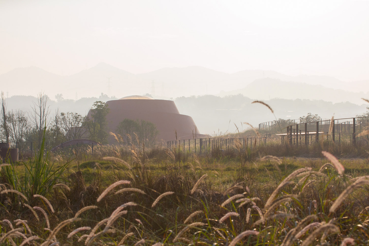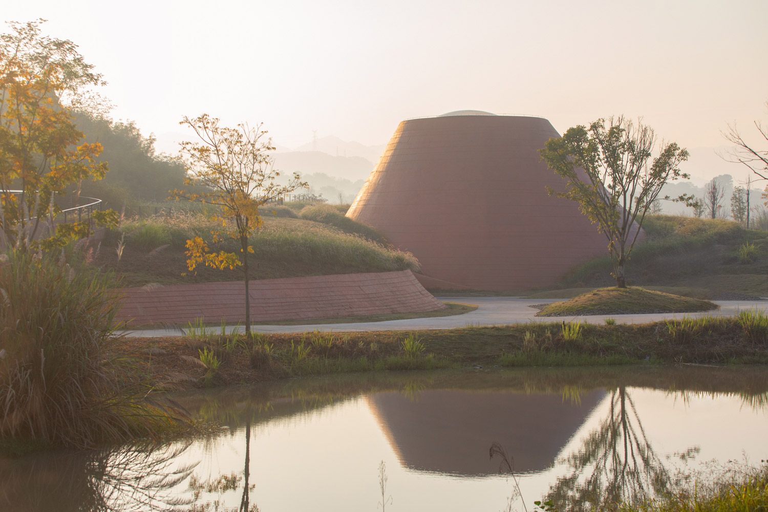 重庆广阳岛大河文明馆借助场地现状“遗痕”展开绿色生态设计,采用一系列科技展陈技术,“起承转合”五大篇章讲述“世界流域文明的兴衰演进大势”、发掘“中华大河文明的传承发展之道”、打造广阳岛成为“长江经济带生态文明的交流展示之眼”。设计立足于重庆本土的气候特点与广阳岛的生态本底特征,项目采用了生态屋面、开放庭院、天井天窗等一系列绿色设计手法,力求做到自然能源与生态资源利用的最大化;建筑布局应紧凑高效,各建设区域主题明确,功能复合,可满足多种不同规格、场景下的功能使用需求;合理配置建设资源,对场地内现存或建造过程中产生的碎石、巨石等进行景观化再利用。
